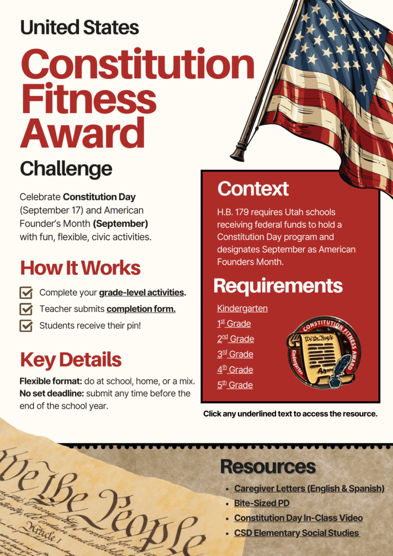 Canyons School District is celebrating September as Founders Month and Wednesday, September 17, 2025, as Constitution Day in our schools.