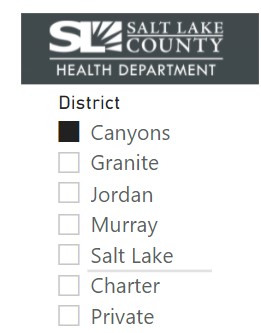 For the most up-to-date look at COVID-19 cases among K-12 students, please see the Salt Lake County Health Department’s COVID-19 Data Dashboard. At the top of the dashboard, you’ll see a menu of data options. Click on the “School” menu item and then check the box for “Canyons” to see a school-by-school listing of the number of Canyons District students who have tested positive for COVID-19 in the last 14 days.