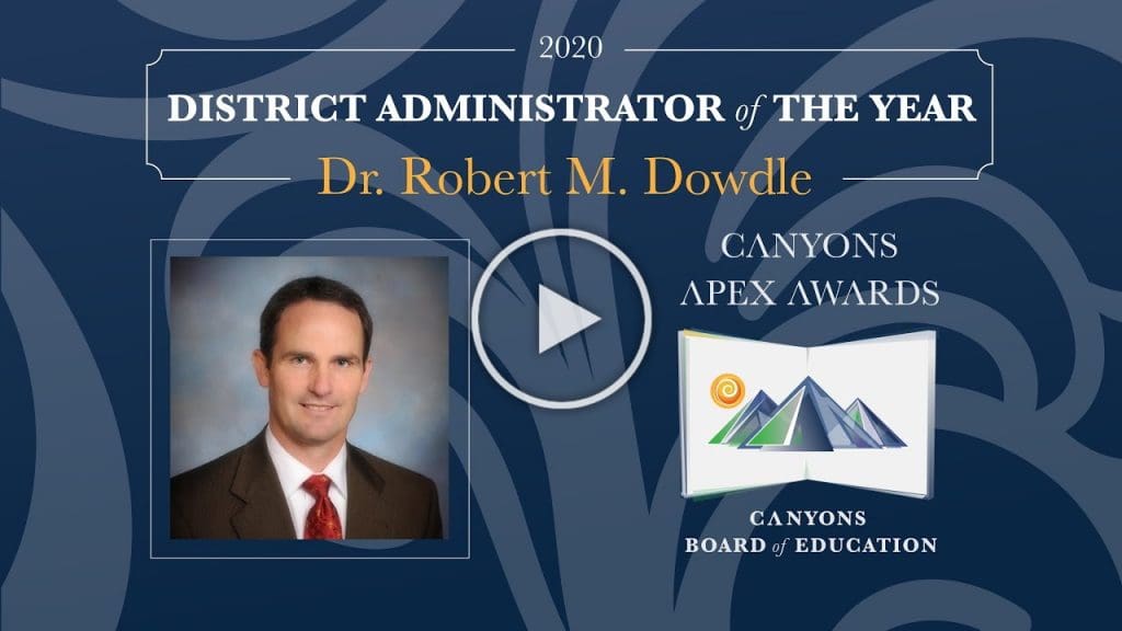 You might be inclined to describe Dr. Robert M. Dowdle as an operations guy. After all, since Canyons District’s earliest days he has, in one capacity or another, been responsible for keeping 6,000 employees working in lockstep to support the growth and achievement of 34,000 students. But Dowdle is more like a stealth leader of leaders, quietly planting in others the seeds of progress and change. Perhaps this instinct to nurture greatness comes from being an educator of 31 years. Whether teaching high school history lessons or serving as Assistant Superintendent, Dowdle’s approach has been to build trust with people and give them the freedom to do their best work. It’s an understated leadership style, one that has served him and Canyons District well, but that can make his accomplishments easy to overlook — accomplishments such as soaring year-end test scores and a 7 percentage increase in CSD’s high school graduation rates. With every inherited responsibility has come more work, but Dowdle will say his colleagues make his job easy. With every leadership and organizational change have come new goals and initiatives, but Dowdle will say he’s merely removed obstacles to help them happen. With the pandemic have come unforeseen challenges, but Dowdle will credit his team for finding solutions, though he’s missed nary a day of work since the onset of the health crisis. For all he has done to build Canyons and keep it united and strong, the Canyons Board of Education and Administration are proud to present Dr. Robert M. Dowdle with the 2020 Apex Award for District Administrator of the Year.