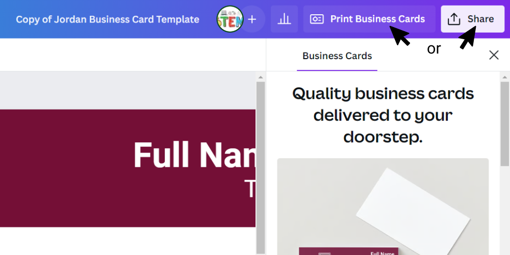 When you click on the link below, it will open a separate tab in your browser. Once you've dowloaded a finished business card, you can return to your original tab and start over.