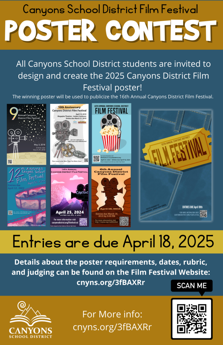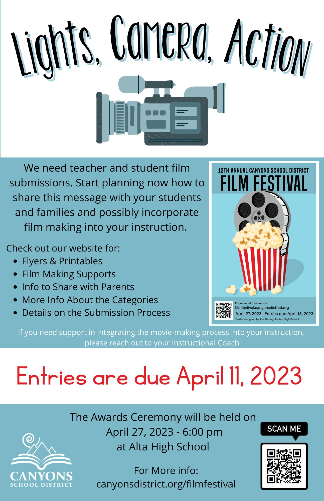 Ready to join the ranks of past festival winners? Start your filmmaking journey here, and remember – your instructional coach and Festival Director Justin Andersen (justin.andersen@canyonsdistrict.org) are here to support you every step of the way.