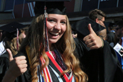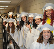The celebratory mood of Corner Canyon High’s commencement rites turned somber when Principal Darrell Jensen announced the school would give posthumous diplomas to two students who perished in a car crash. The parents of Ethan Fraga and Lexie Fenton were welcomed to the stage at the Jon M. Huntsman Center at the University of Utah to accept the diplomas on behalf of their children, whose November 2016 deaths rocked the tight Charger community. In praising the accomplishments of the Class of 2018 “the most decorated class in school history,” Jensen says the principal also proffered that perhaps the most important trait of this year’s senior class “is the sense of resilience they have shown.” The loss of the two much-liked classmates was difficult to overcome, he said, but they honored the memory of their friends by making connections, building relationships, and dedicating themselves to excellence. “We lost two amazing friends,” said Senior Class President Hannah Sanderson. “We were able to help each other get through it together.” This year’s graduating class are champions in so many ways. They took honors in band, choir, orchestra and theater, among others events and activities. Senior August Burton was named a National Merit Scholar, every athletic team made the state playoffs, and the girls golf team and the girls track team won 5A state championship trophies. This year, the Chargers raised $58,000 for charity and seniors earned some $6.5 million in scholarships and other offers are still trickling in, Jensen said, also adding that the school was named by U.S. News and World Report as one of the top five high schools in Utah. “You, as a Class of 2018, have left a legacy of accomplishments. No one is doubting your ability to succeed. In fact, we are counting on it,” he said. Senior Emily Arthur, who has been accepted to Utah State University’s Aggies Elevated program for students with intellectual disabilities, received a standing ovation after her remarks. She urged fellow graduates to never let anyone limit their potential. “It is time to dream a new dream” said Arthur, who has Down syndrome. “The sky is the limit.” The path to graduation hasn’t always been easy, said student speaker Hannah Trudo. However, she said, the tough times have turned the forward-looking seniors into a strong, capable generation. “We have survived the storms of our youth.” Now that the Chargers of 2018 have reached the touchstone of high school graduation, “it is our turn to go into the world and make our mark â¦. It is our turn to change the world,” said Tyler Miller. “High school is awkward,” he said. “But it gave me a home. It gave me a place to belong.”