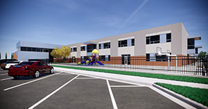 The building will be built on the southeastern edge of the campus so as to minimize disruptions for students and allow them to stay in the existing school building during construction.