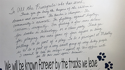 “Thank you being the keepers of the children’s dreams and sorrows. The teacher’s champion. The community’s advocate,” reads a portion of the message. “To be a principal at Midvalley is to be a part of a very small group of very lucky people. I commit to taking the magic and spirit of this office with me to our new space.”