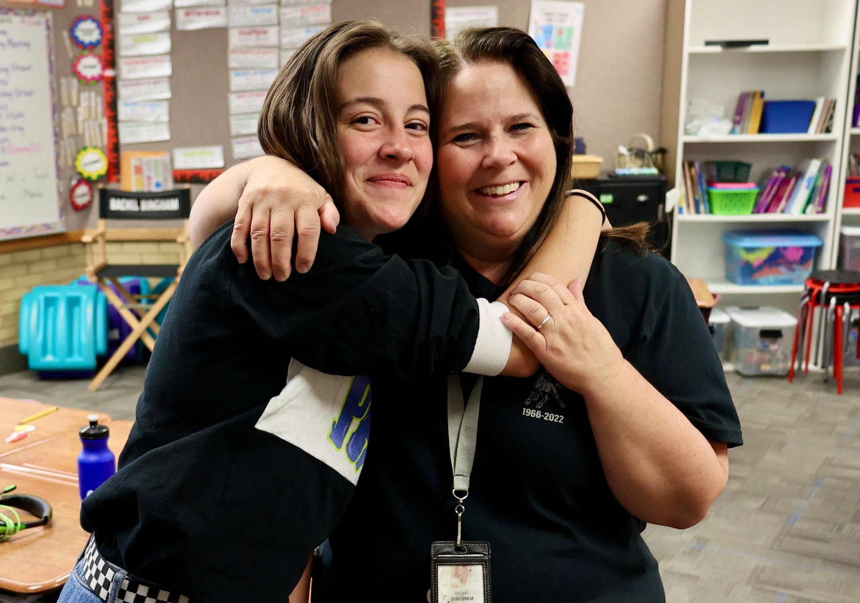 Kallie Turner and Danielle Jacobson, who attended Bell View through 2012, first met in Miss Johnson’s first-grade class 15 years ago. They’re getting married in June, so they weren’t going to miss this opportunity to visit their old stomping grounds.