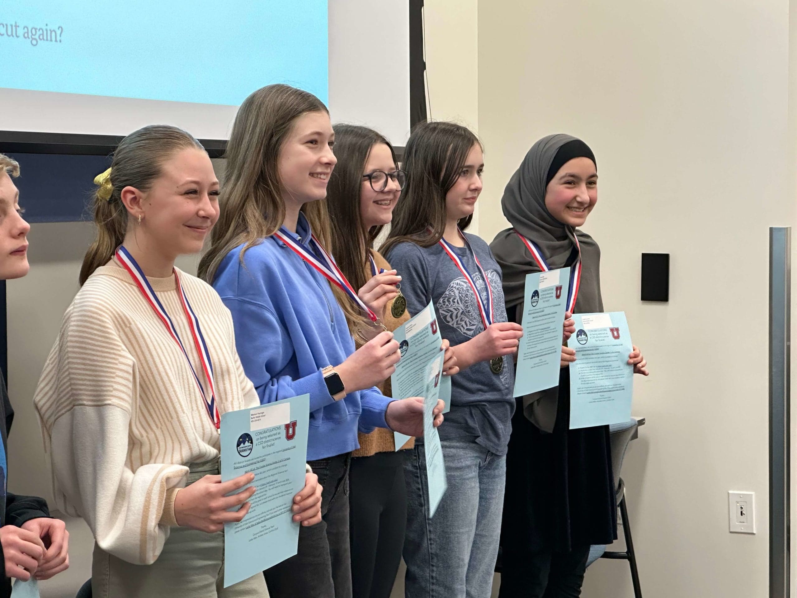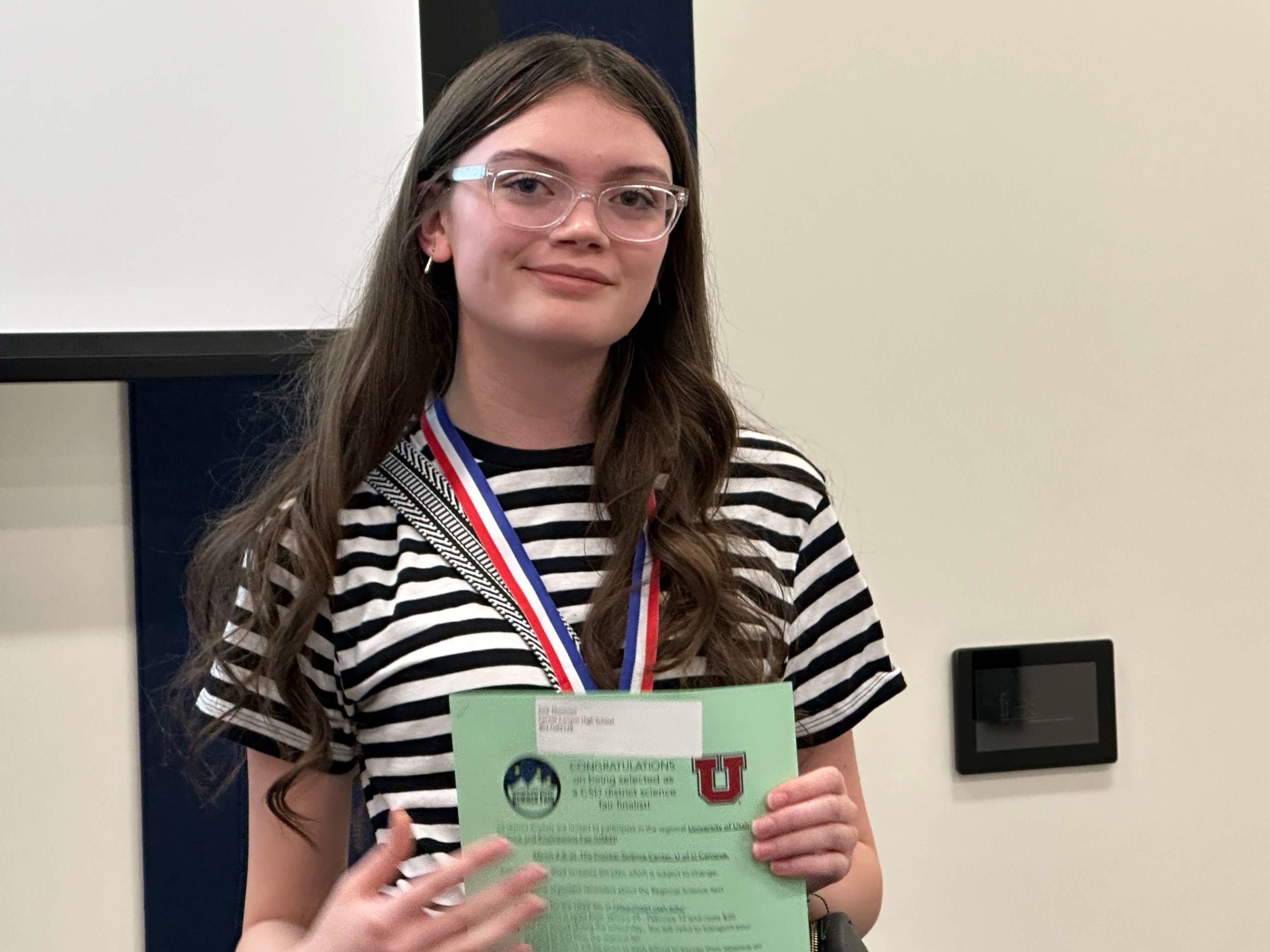 “I’ve been competing in science fairs since I was in third grade,” said Corner Canyon High freshman Evie Thomsen, one of 72 students to be named finalists at a Friday, Feb. 2 awards ceremony. CSD’s finalists will advance to the regional level to compete at the 2024 University of Utah Science and Engineering Fair, March 4-8. Top regional winners will be eligible to compete at national and international contests.
