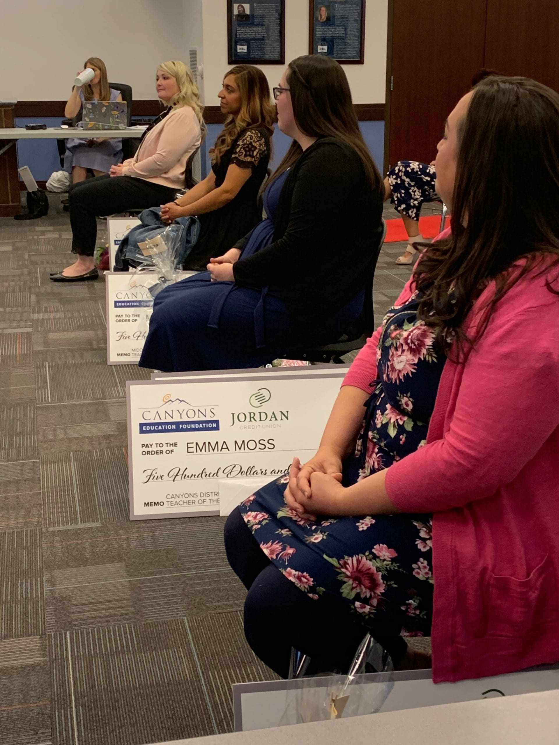 The four finalists were chosen from a field of 47 teachers from Canyons District schools and programs. All school-based nominees were nominated by peers, parents and students for the honor, for which they received donated gifts and prizes from local business partners. A gift basket delivered to all CSD Teachers of the Year was packed with $500 in donated items from local businesses.