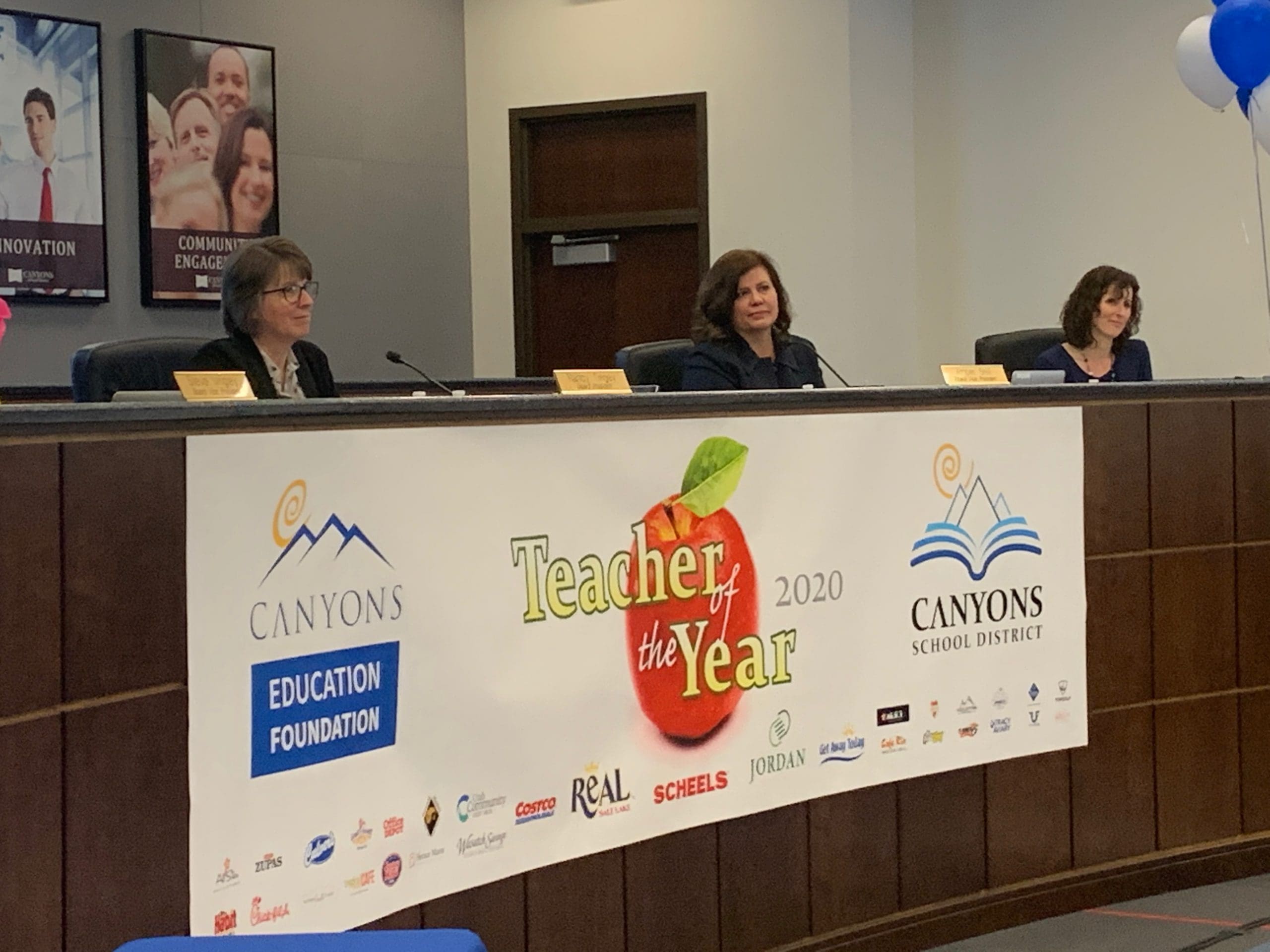 Board President Nancy Tingey said says Canyons teachers such as Moss, Simao, Remy and Reeves were “at the forefront of our community’s response to the COVID-pandemic. Teachers reached out through digital means to ensure that children continued to learn and grow.