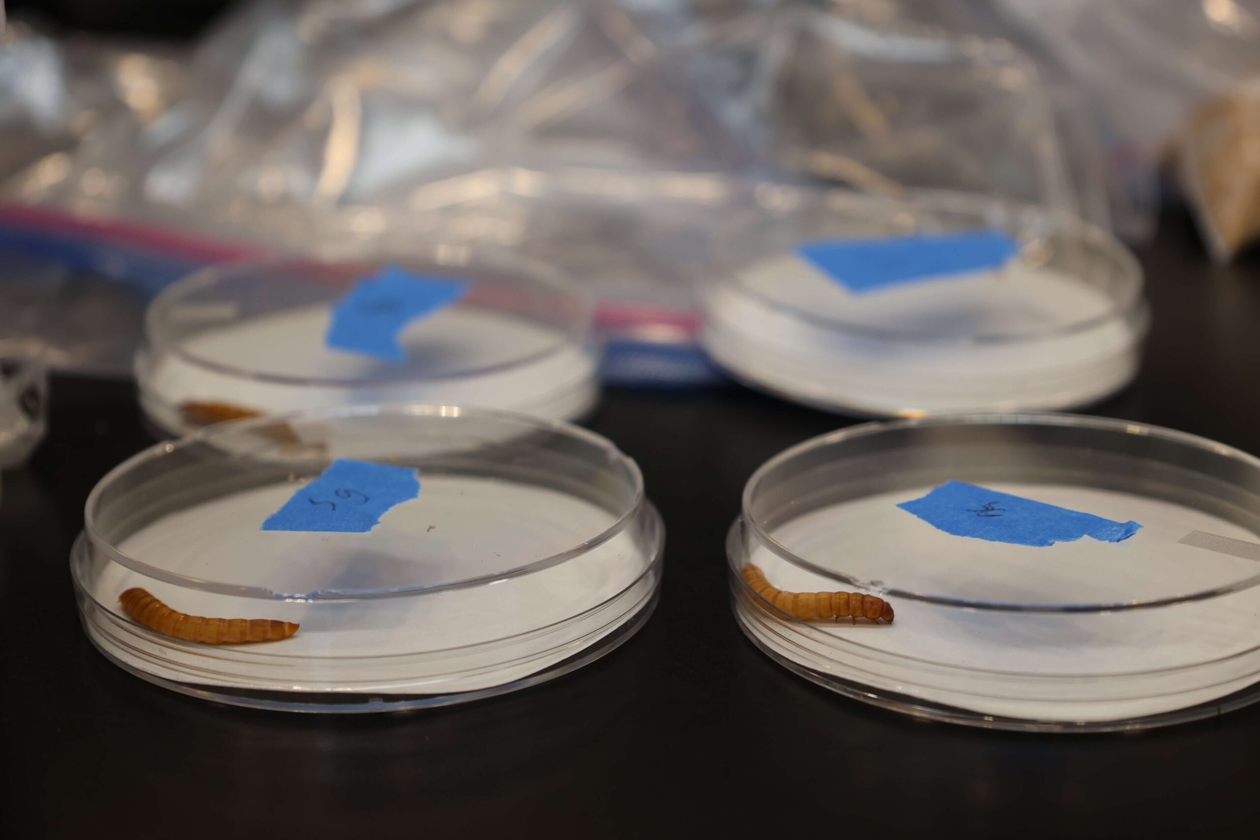 For the project, the team sought and received guidance from scientists in the same field of study. On a recent “packing day,” they put two different types of nematodes with mealworms, and then packed them into sand. The team was required to account for every mealworm, and how much sand, water, and the weight of the nematodes down to the milligram.