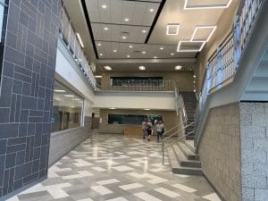 To reduce costs, architects modeled its design after other elementary schools in the area. When students entered on Monday, they marveled at the high ceilings, large rooms, and spacious hallways.