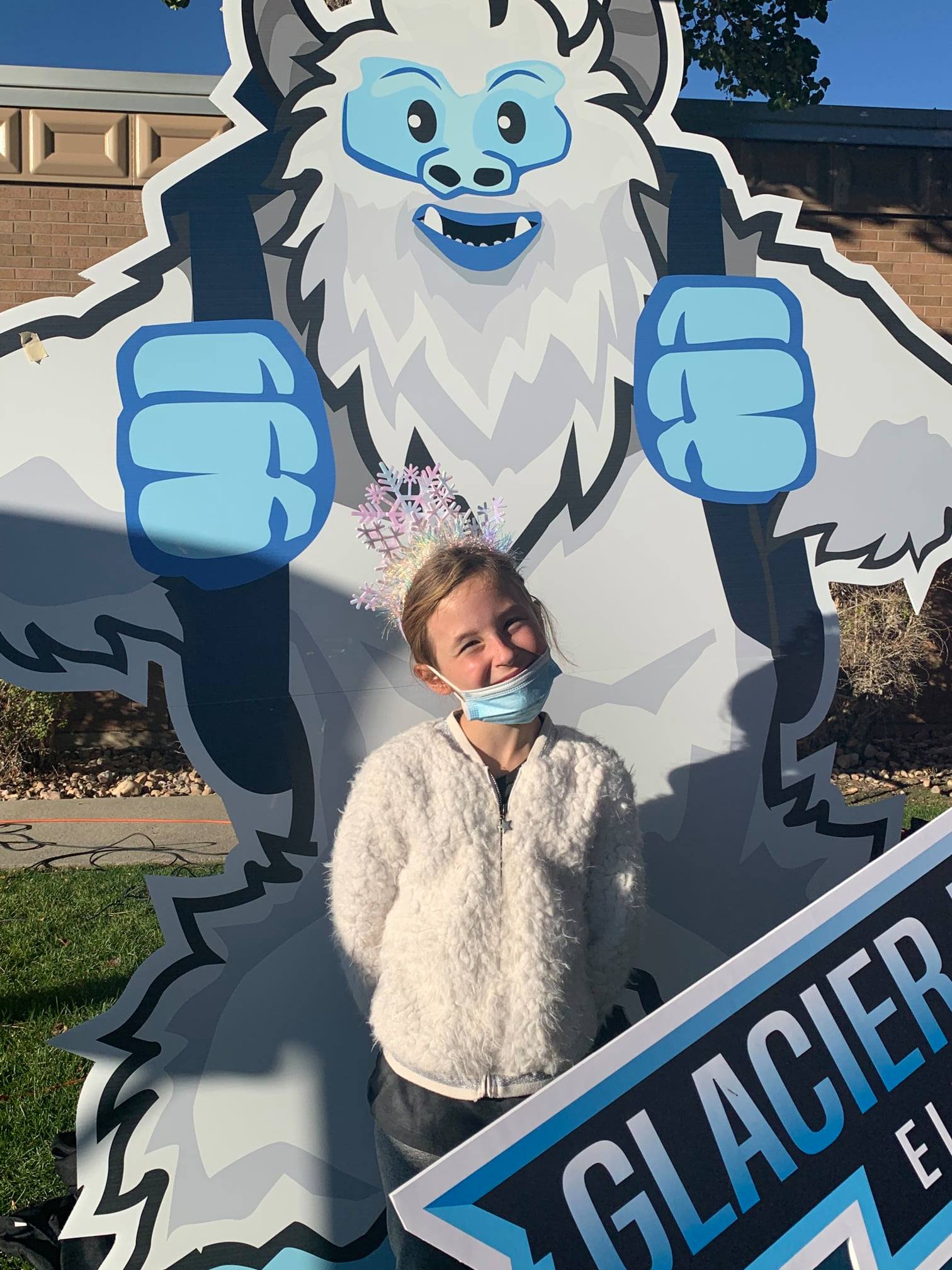 With an anticipated opening date of August, 2022, construction of Glacier Hills is well underway, and Winfree has been working to acquaint students with their new Yeti identity. The students were invited to submit ideas for naming Blizzard, a short-list of which was put to popular classroom votes.
