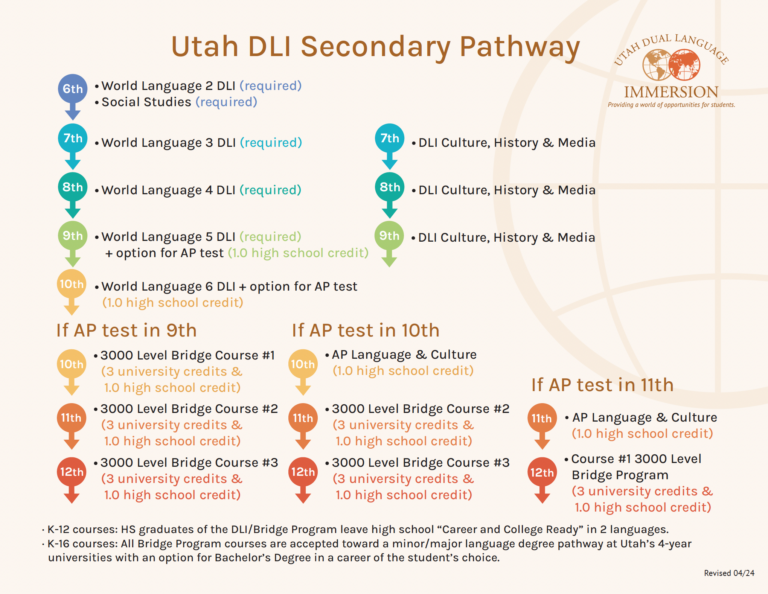 Any 10th-12th grade students who pass the AP World Language and Culture exam with a 3 or above in a language can enroll in Bridge classes.