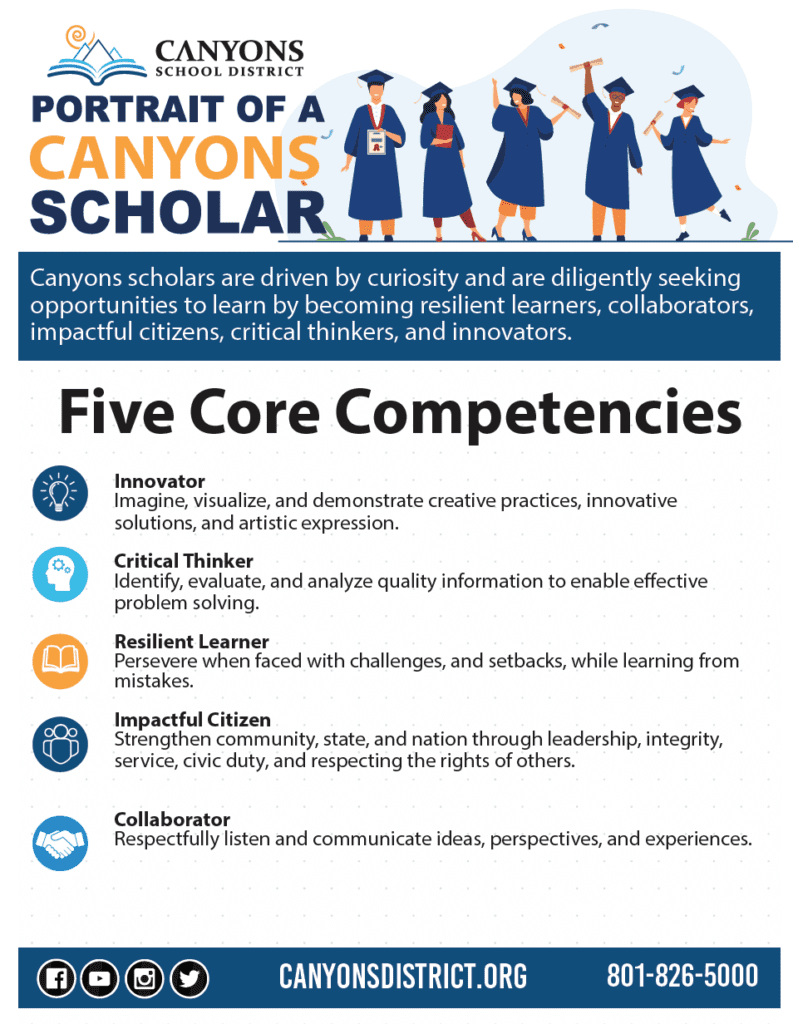 Canyons School District graduates demonstrate the mastery, autonomy, and purpose as set forth in Utah’s Portrait of a Graduate.