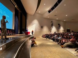 Eastmont Middle teacher Marc Gregson speaking to Eastmont students.